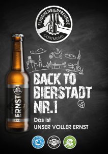 Aber nicht nur ihr Slogan „Friede, Freunde, Flaschenbier“ überzeugt. Den Flaschenbierfreunden ist es tatsächlich gelungen, ein Pils mit einem eigenständigen Geschmacksprofil zu brauen. Ein Pils, dass nicht nur ihren Qualitätsansprüchen genügt, sondern ebenso eine willkommene Bereicherung für die Wiederbelebung des guten Ruf von Dortmund als Bier-Hochburg ist.