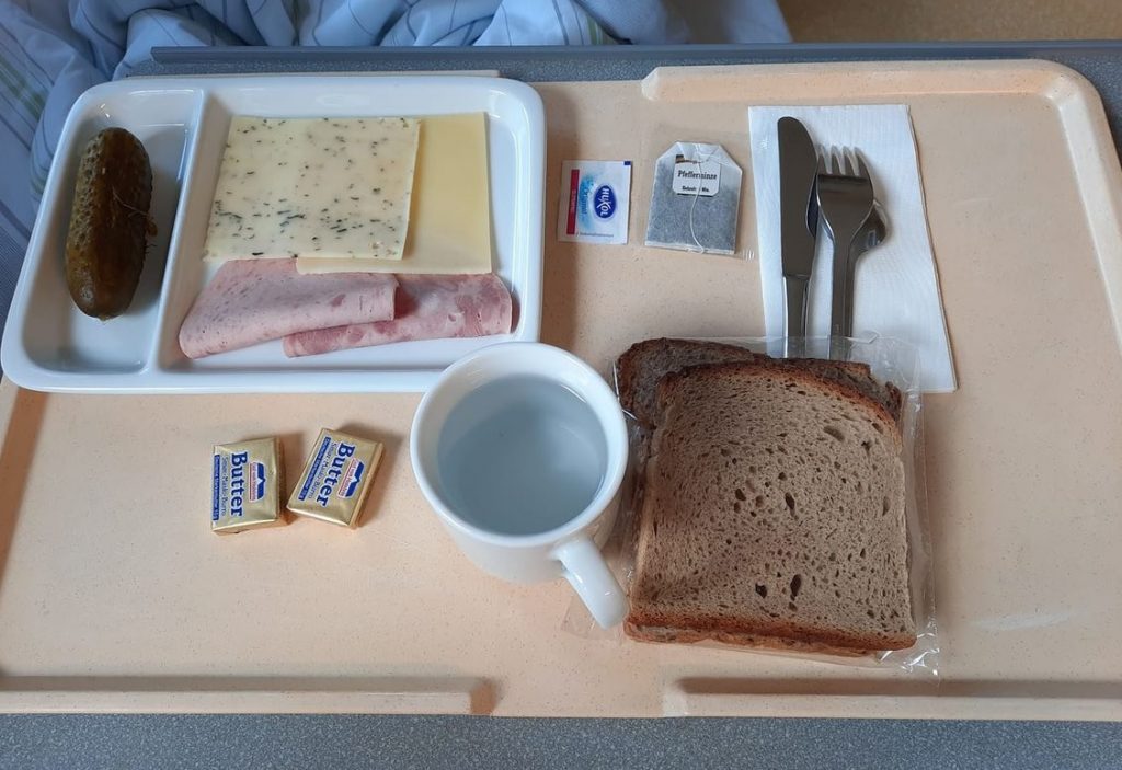 Der nachfolgende Erfahrungsbericht samt begleitender Foto-Reportage erschien in chronologischer Reihenfolge zuerst auf dem Facebook-Account des Autors Rembert Stiewe. Es handelt sich dabei um eine eindrucksvolle Beschreibung, welche Wirkung die verabreichte Krankenhauskost auf Patienten haben kann, wenn es darum geht, einen Klinikaufenthalt schnellstmöglich zu beenden. Aus Sicht einschlägiger Unternehmensberater eine wahrlich effektiv kostensenkende Maßnahme oder anders formuliert: Schonkost à la Jens Spahn.