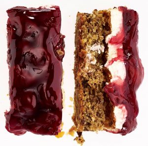 Nicht minder beeindruckend kam die Kuchenauswahl daher. Es gab sogar Petit Fours, Gebäck, Torten mit Baiser oder Buttercreme, saisonal Frankfurter Kranz oder eine Schoko-Torte mit einer Creme mit einem Kakaogehalt von 65 Prozent. Blechkuchen, darunter Kirsch-Mascarpone-Schnitten oder Aprikosen-Schmand, leicht angeflämmt, dafür mit einer Gelatine-Glasur überzogen, verschiedenste Sorten von Röstkaffee und natürlich auch Pralinées.